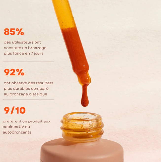 Oubliez les crèmes, les séances UV, les sprays : Quelques gouttes suffisent. Ajoutez-les à votre verre d'eau ou prenez-les sous la langue.